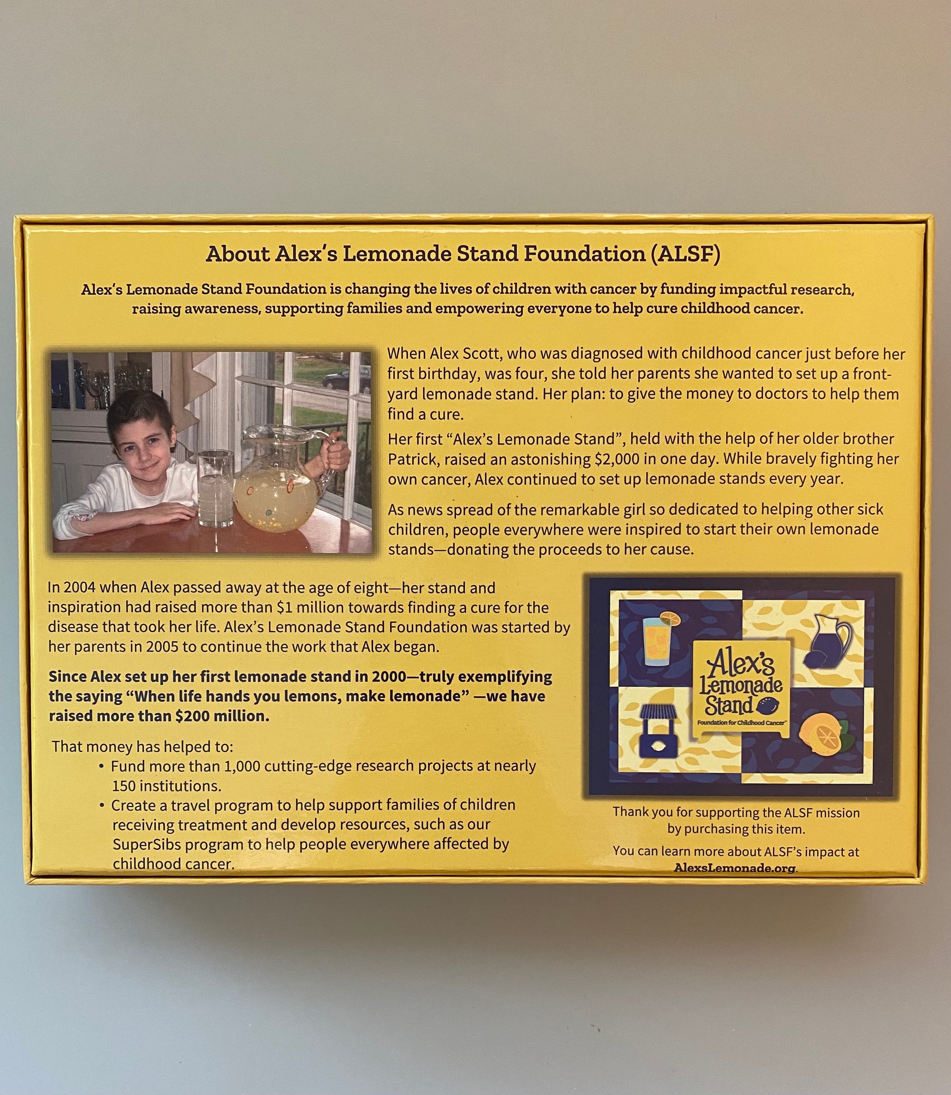 This is the Limited-Edition Alex’s Lemonade Stand Foundation (ALSF) 250-piece jigsaw puzzle.