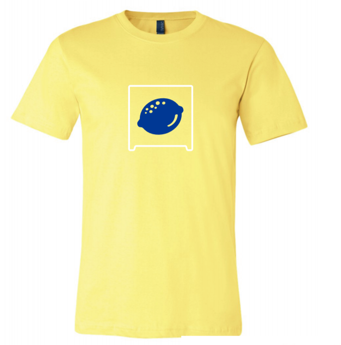 This high-quality, t-shirt features a minimalist blue lemon and white stand outline over a light yellow background. ALSF's signature blue lemon is making its fashion debut with this stand-out tee.