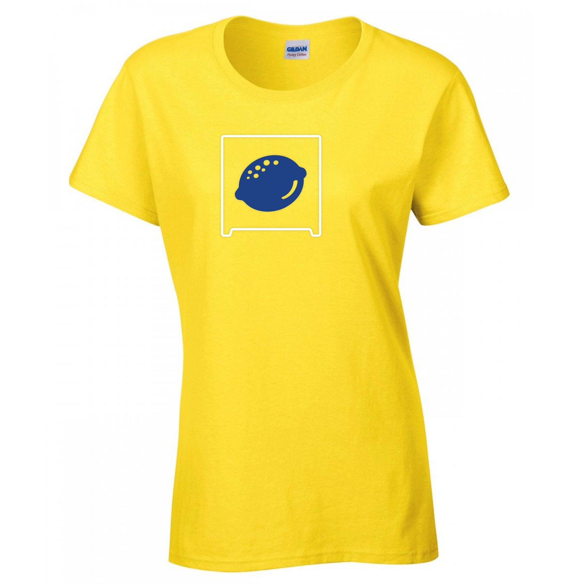 This lemon colored ladies tee is as sweet as a sip of lemonade, featuring the iconic blue lemon for a classic look.