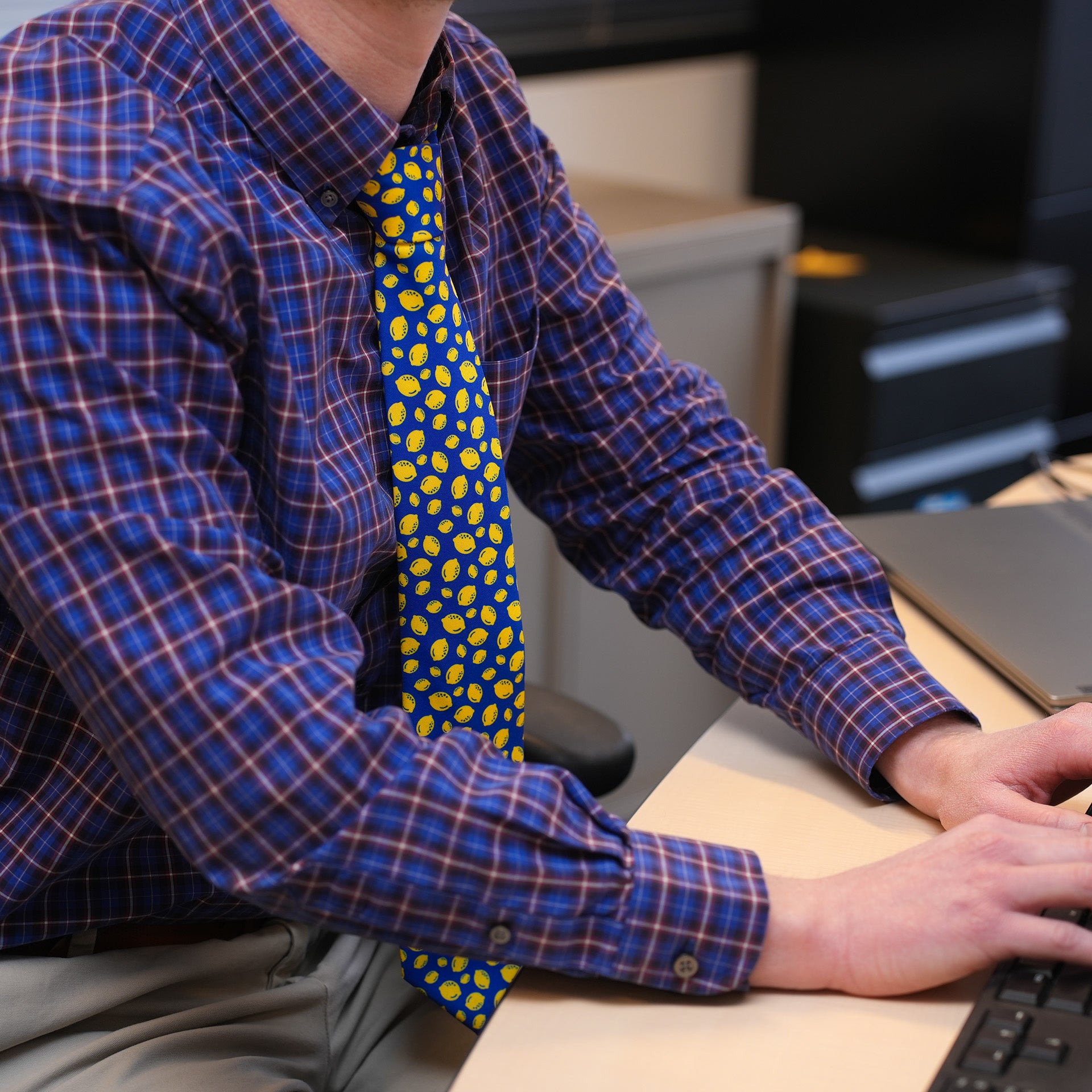 Take business to another level with the ALSF Lemon Tie! This stitched blue tie with yellow lemons is combines sleek and flashy.