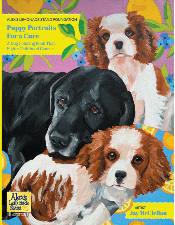 This coloring book was created by pet artist, Jay McClellan, to support childhood cancer research through Alex's Lemonade Stand Foundation. Inside, you will find twenty-seven line art portraits of dogs that can be colored in. This Puppy Portrait publication is perfect for both adults and kids that love dogs.